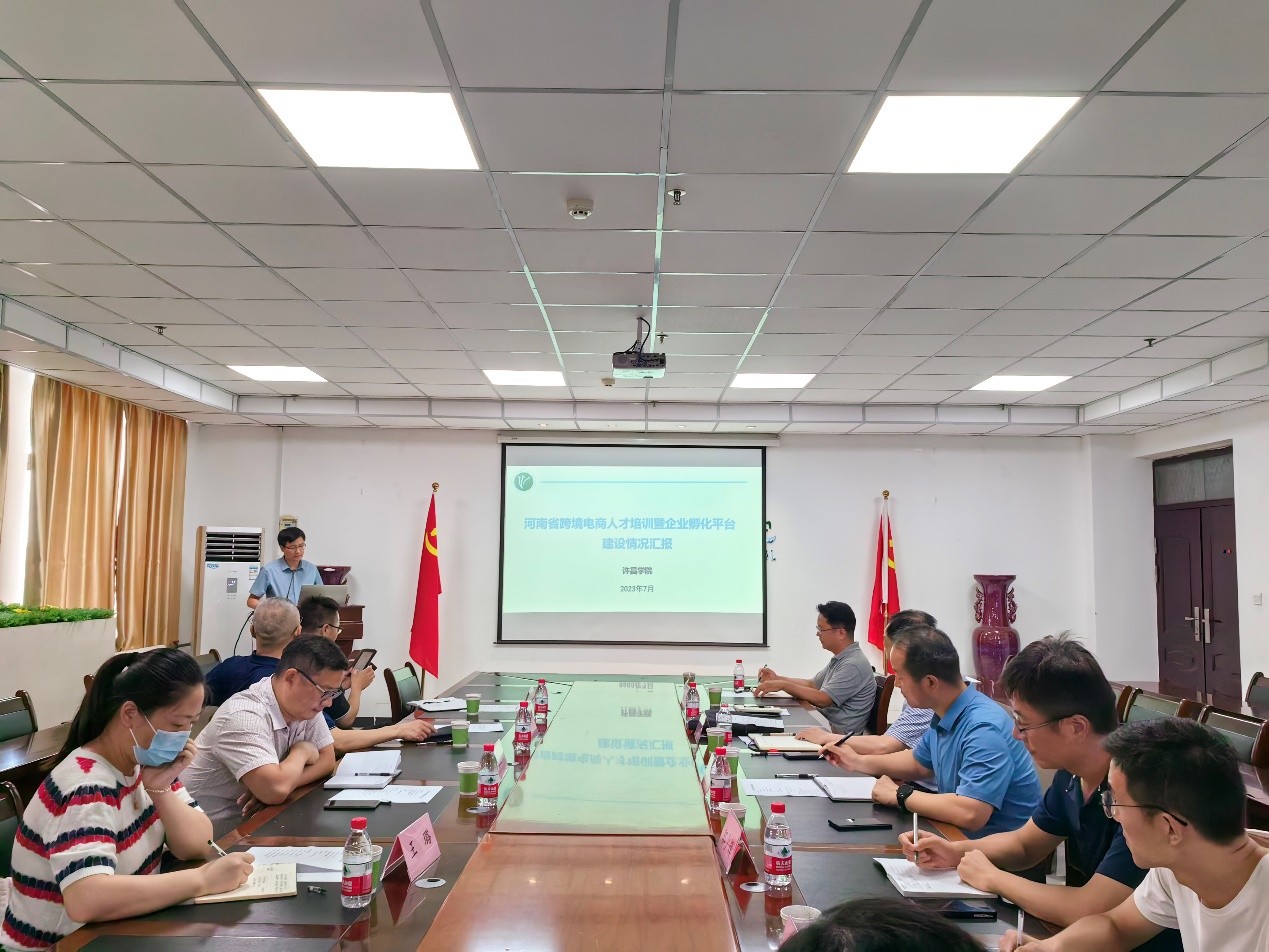 为进一步推动我市跨境电商发展,实现校企合作深度融合。7月11日上午,许昌市商务局党组成员、纪检组长李智,电子商务办公室主任梁金成等相关领导莅临我院调研河南省跨境电商人才培训暨企业孵化平台建设情况,校长助理、财务处处长沈春光、商学院院长张新铭,副院长朱彦杰、电子商务教研室主任常会强、发制品教研室主任郭少辉以及跨境电商平台日常管理人员等教师参加了调研会。