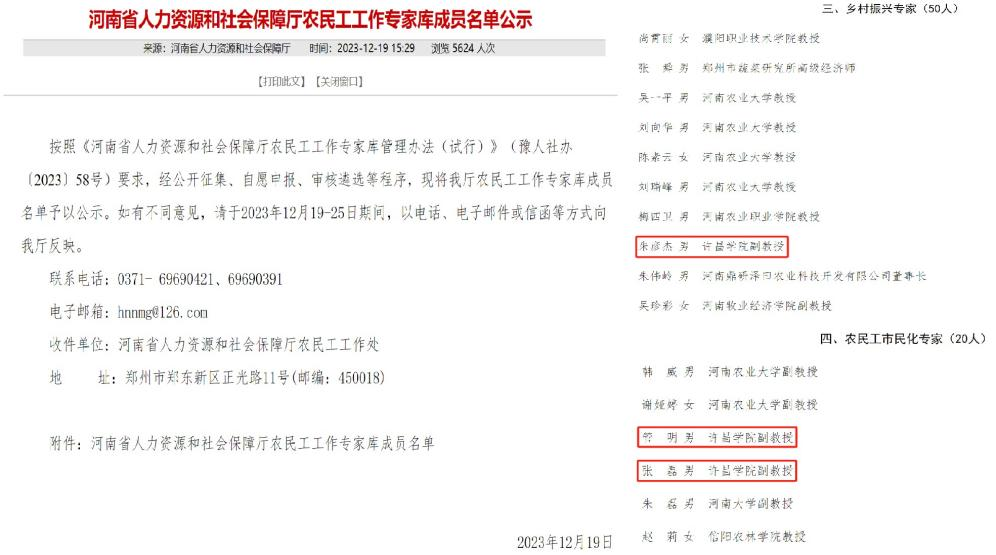 近日,河南省人力资源和社会保障厅公布了农民工工作专家库成员名单。我院有三位教师入选专家库,电子商务专业朱彦杰副教授入选乡村振兴专家,工商管理专业管明副教授、人力资源管理专业张磊副教授入选农民工市民化专家。