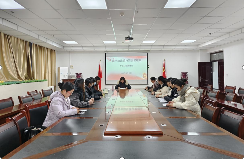 自2023年7月启动专业认证工作以来,在商学院领导的大力支持下,旅游与酒店管理系全体教师积极参与专业认证工作。7-8月为专业认证准备期,9月-10月为专业认证自评报告提交与审核期,11月自评报告审核通过后,就开始进行专业认证审核表格的填写与支撑材料编写工作。为了顺利推动专业认证工作,旅游与酒店管理系定期召开推进会。本次推进会上,刘晓静老师对旅游管理专业认证支撑材料完成情况进行了介绍,对于一些难以整理的支撑材料,大家集思广益,出谋划策,共同商议解决方法。