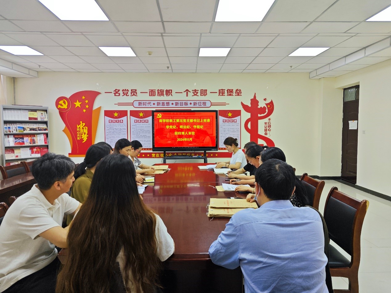 5月14日,我院教工第五党支部书记刘霞以“学党纪、明法纪、守规纪,回归育人本位”为题给支部全体党员上了一场主题党课。