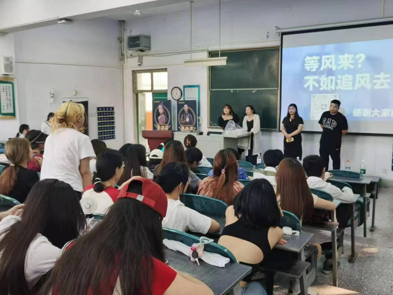 宣讲会上,多位资深行业专家为广大师生进行了精彩讲解,资深外贸人毋伟平分享了自己20年的外贸经历,以生动的实例讲述了国贸专业生涩学生到外贸老鸟的蜕变过程,并强调了选择的重要性。他提到:“选择大于努力,成功是可以被设计出来的。”同时毋伟平还历数了电商行业从2014年至2024年的各类风口,为在场的学生们提供了宝贵的行业洞察。阿里巴巴国际站许昌服务中心负责人对许昌假发行业的市场规模进行了详细介绍,并分析了阿里国际站的跨境直播红利,指出假发行业作为许昌的特色产业,在跨境电商领域具有巨大的发展潜力。阿里巴巴资深讲师蒋成文对TikTok近几年的发展及前景进行了深入剖析,并分析了跨境企业对英语主播的市场需求,介绍了许昌地区假发英语主播的薪资待遇以及用人标准,为学生们提供了职业发展的参考方向。假发直播优秀案例主播朱田田和许昌华硕发制品直播一姐杜怡楠分享了她们转行成为假发行业跨境主播的心路历程;她们以自己的亲身经历告诉学生们,只要有梦想和勇气,就能够在跨境电商行业中闯出一片属于自己的天地。最后,张舒然介绍了跨境主播培训基地及培训课程,并进行了现场的有奖互动交流环节。学生们积极参与,争相提问,现场氛围十分活跃。