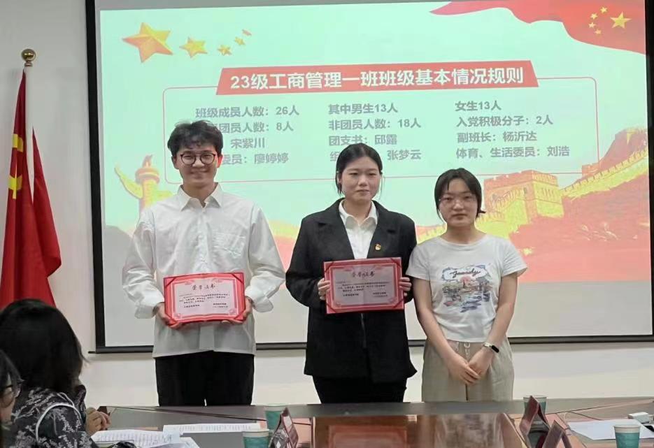 服务党员、团员作为一小组通过抽签,依次上台展示。各答辩团队通过精心制作的PPT和短视频,详细汇报了他们在思想引领、组织建设、班团文化建设等方面的工作经验、走访记录和创新实践。评委们则从多个角度对汇报内容进行了认真评估,既肯定了各队伍的努力和成就,也提出了宝贵的改进意见。经过评委严格的评分,人力资源管理一班和旅游管理二班凭借出色的表现脱颖而出,最终获得了荣誉班集体的称号,由赵燕燕老师依次为本学年荣誉班集体进行颁奖。