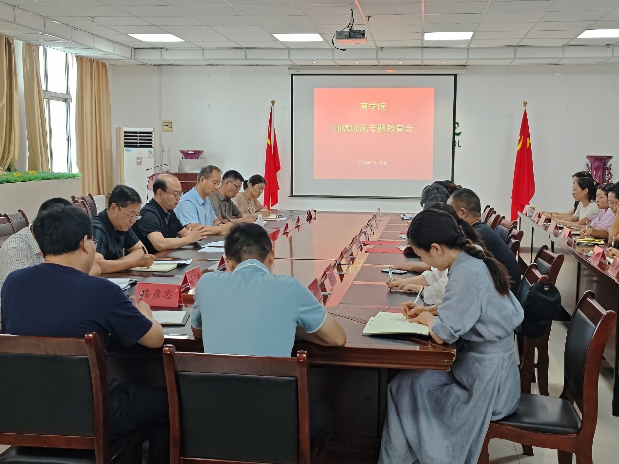 会议要求商学院全体党政干部要尤其注重示范引领,带动全体教师充分重视个人师德师风建设,恪守职业行为准则。要重点从思想政治、教育教学、学术道德、工作和生活作风等四个方面以身作则,坚定育人初心,立足本职岗位,以德立身,以行引路,坚守师德,努力成为塑造学生品格、品行、品味的“大先生”。