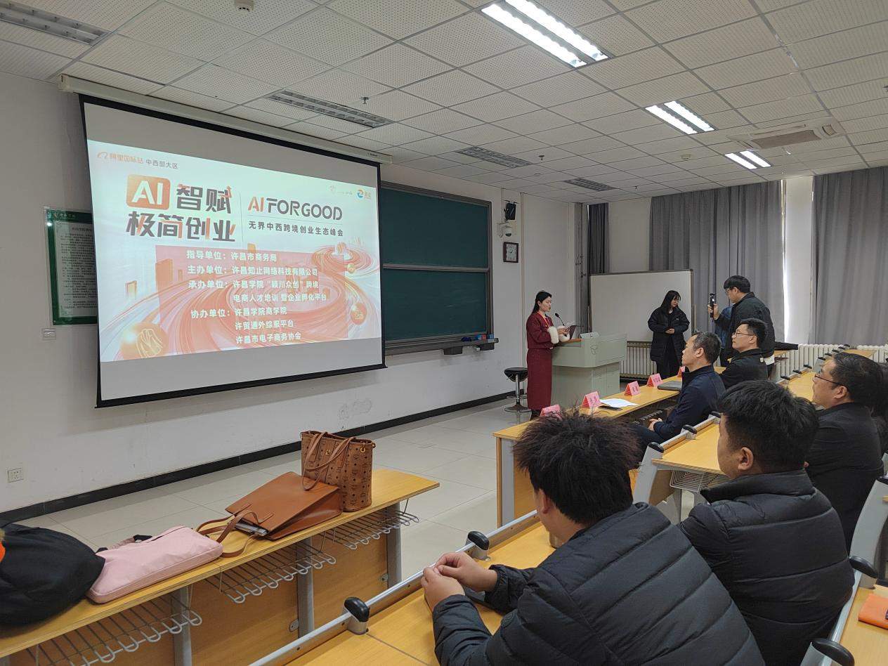 2月26日,由许昌学院“颍川众创”跨境电商人才培训暨企业孵化平台承办的““AI智赋、极简创业”无界中西跨境创业生态峰会”在我校文科综合楼E-109召开,本次论坛由许昌学院商学院和许昌市电子商务协会、许贸通外综服务平台联合协办,许昌市跨境电商企业人员、我院电子商务专业师生150多人参加会议。