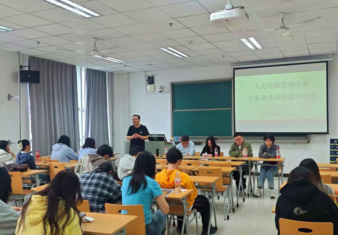 近日,人力资源管理专业在综合楼E-402教室举行公务员考试经验交流座谈会。通过国家公务员考试的于海迪和通过河南省选调生考试的苏钰彤、韩家祺三位同学,受邀参加了交流座谈。人力资源管理专业教师漆彦忠、张磊,2022级人力资源管理专业全体同学共同出席会议。