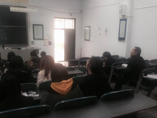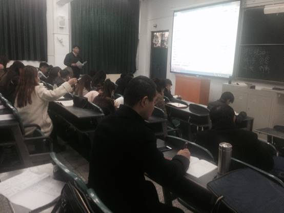 11月21日,我院本学期教学督导小组在张新铭院长带领下督导课堂教学情况,到A合十三教室查看管明老师的《组织行为学》授课和学生上课情况,并在下课后督导组成员及时与管明老师反馈教学督导结果。