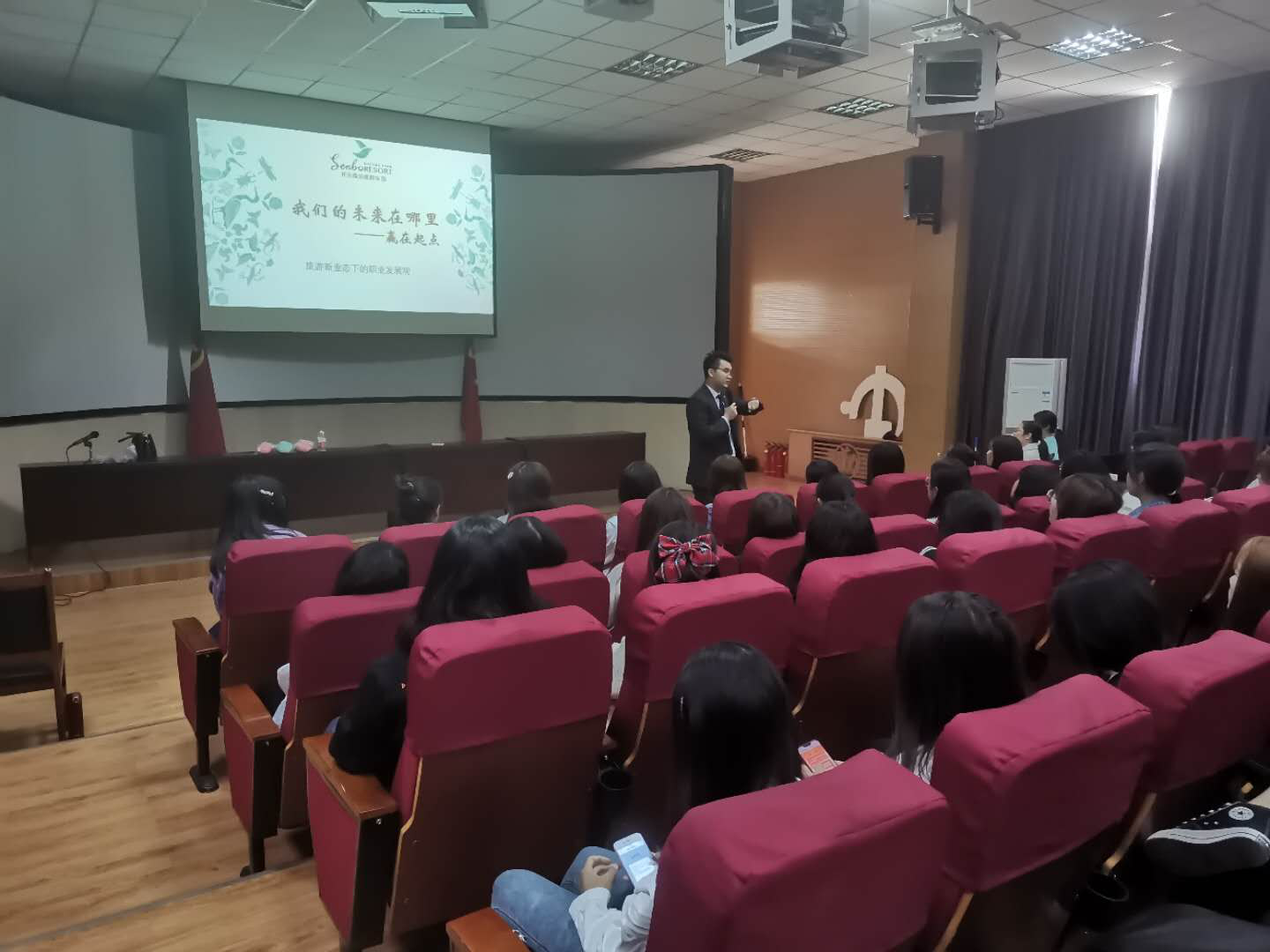 在就业宣讲会上,单经理重点介绍了开元集团的人才培养体系,包括未来之星、中层接班人、后备高管、管理培训生等内容,鼓励即将毕业的学生到开元就业发展;裴主管作为许昌学院旅游管理专业19级毕业生,结合自身职业发展经历,为学弟学妹们提出中肯的建议,宣讲结束后,同学们与单经理和裴主管就有关问题进行咨询与探讨。