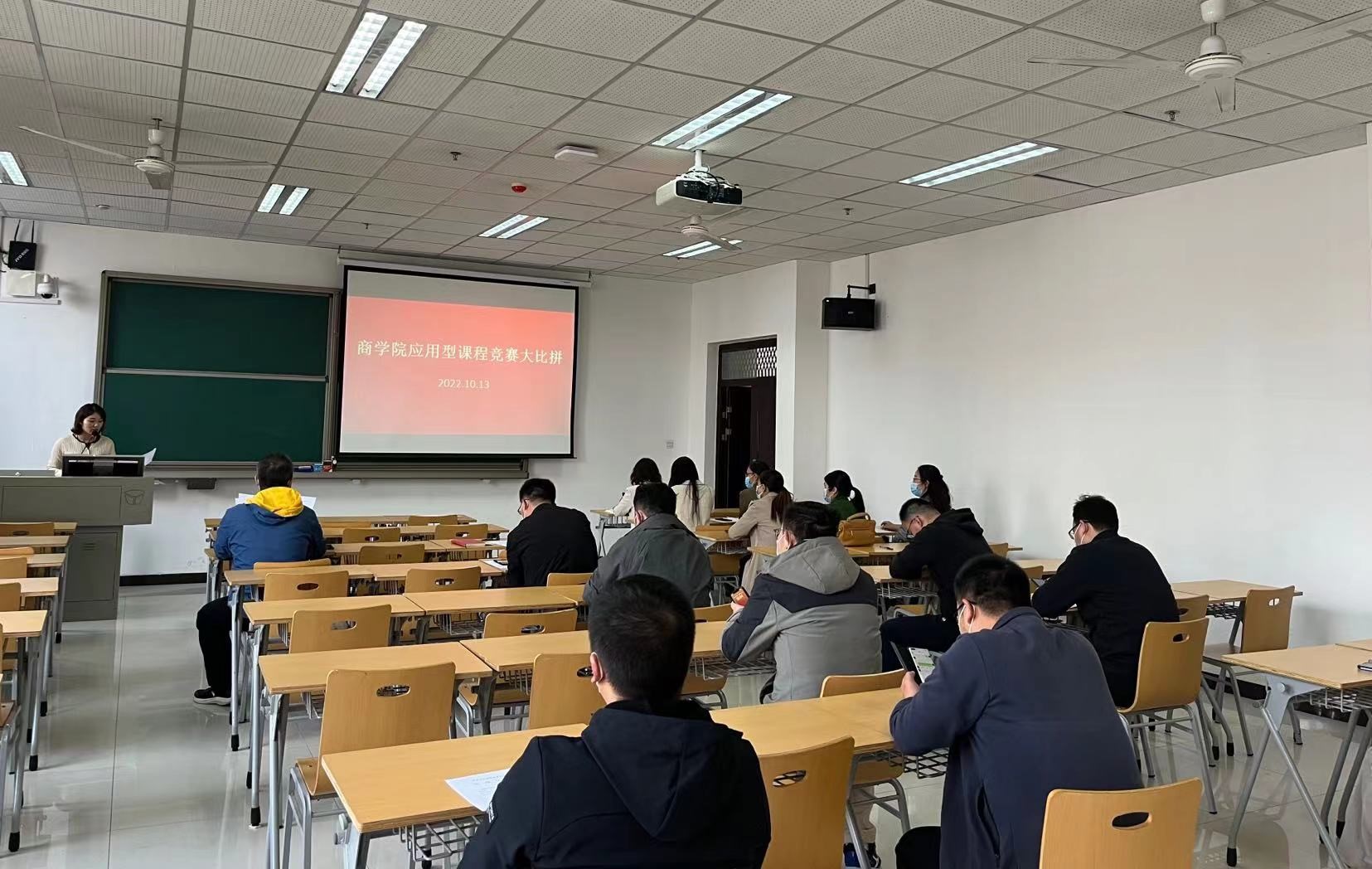 围绕“大学习、大培训、大练兵、大提升”行动计划,为提高我院应用型课程建设质量,提升教师课程设计与实施能力,同时根据学校关于第三届应用型课程设计竞赛的安排,鼓励我院参赛教师能够更充分的进行赛前准备。2022年10月13日下午三点,我院在文综楼E-510举行了“商学院应用型课程竞赛大比拼”活动。此次活动由刘霞副院长主持,八位参赛教师进行赛前展示,院领导班子、各专业负责人及教师代表到场观摩交流。