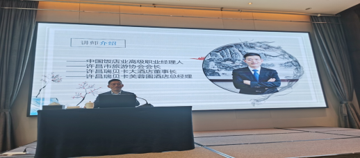 4月14日,参访单位为许昌市瑞贝卡芙蓉园大酒店,参访过程中,工作人员就酒店的设计理念、装饰风格、客房的类型等内容做了详细全面的介绍。许昌瑞贝卡大酒店董事长张保民先生从中国酒店业发展趋势、职业生涯规划等方面为同学们进行了关于职业发展的讲述,更好的引导了同学们对专业未来发展的认识。