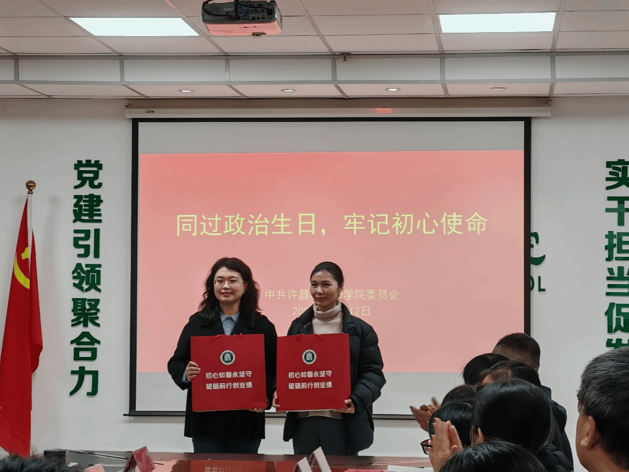 12月12日,我院举办“同过政治生日,牢记初心使命”党员政治生日主题活动。通过重温入党誓词、赠送政治生日贺卡和党建书籍、发放政治生日纪念品等形式,为我院11月、12月、1月入党的党员教师代表,以及2025年度对学院办学发展有特别突出贡献的优秀党员教师代表近30人,共庆“政治生日”。活动由院党委书记王鸿政主持。