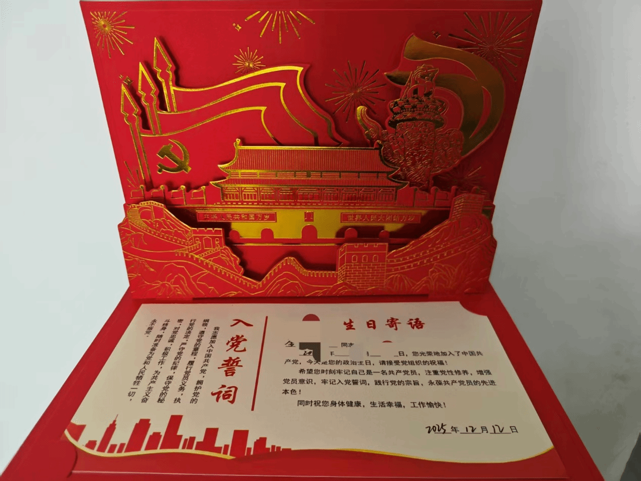 院党委赠送发放了写有每一位党员姓名的“政治生日”贺卡,并送上“政治生日”寄语。贺卡承载着党组织对党员深深的祝福和殷切的期望,提醒大家牢记自己是组织的一员,不忘政治生命的起点,永葆共产党员的先锋模范政治本色。