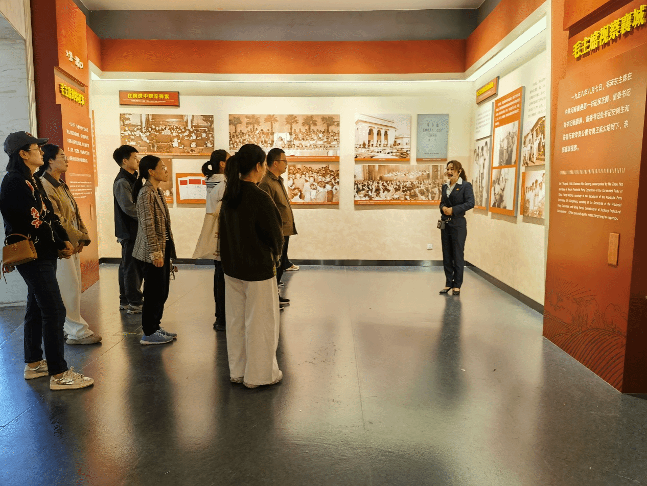 活动首站,党员们来到襄城县毛主席视察纪念馆。进入纪念馆内,全体党员整齐列队先向毛主席像三鞠躬,表达对伟大领袖毛主席的崇高敬意。在庄严肃穆的展厅内,大家认真听取讲解,重温1958年毛主席视察襄城的历史细节,通过一幅幅珍贵照片、一件件实物展陈,深刻感悟老一辈无产阶级革命家深入基层、调查研究、心系人民的优良作风。在讲解员讲到主席踩着清晨的露水深入田间,只为亲眼察看烟苗长势、亲耳听取农民心声时,一位党员被这种深入基层、求真务实的作风深深打动,不禁潸然泪下。参观结束后,大家一致表示,要继承和发扬革命先辈的光荣传统,将红色精神内化于心、外化于行。