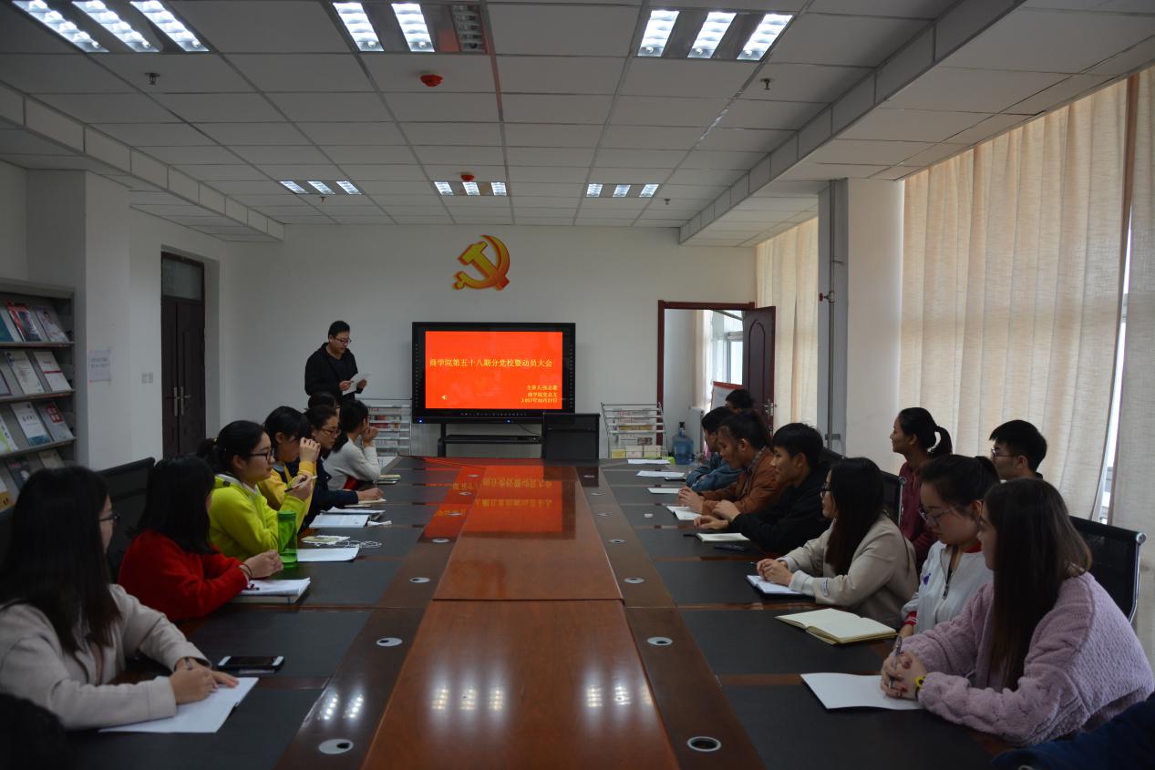 为不断加强党员党性锻炼及党性修养,积极发挥党员的先进模范作用,2017年10月27日14时,商学院第58期分党课开班仪式在文综楼1302教室成功举行。商学院团总支副书记张志豪及商学院入党积极分子参加了仪式。