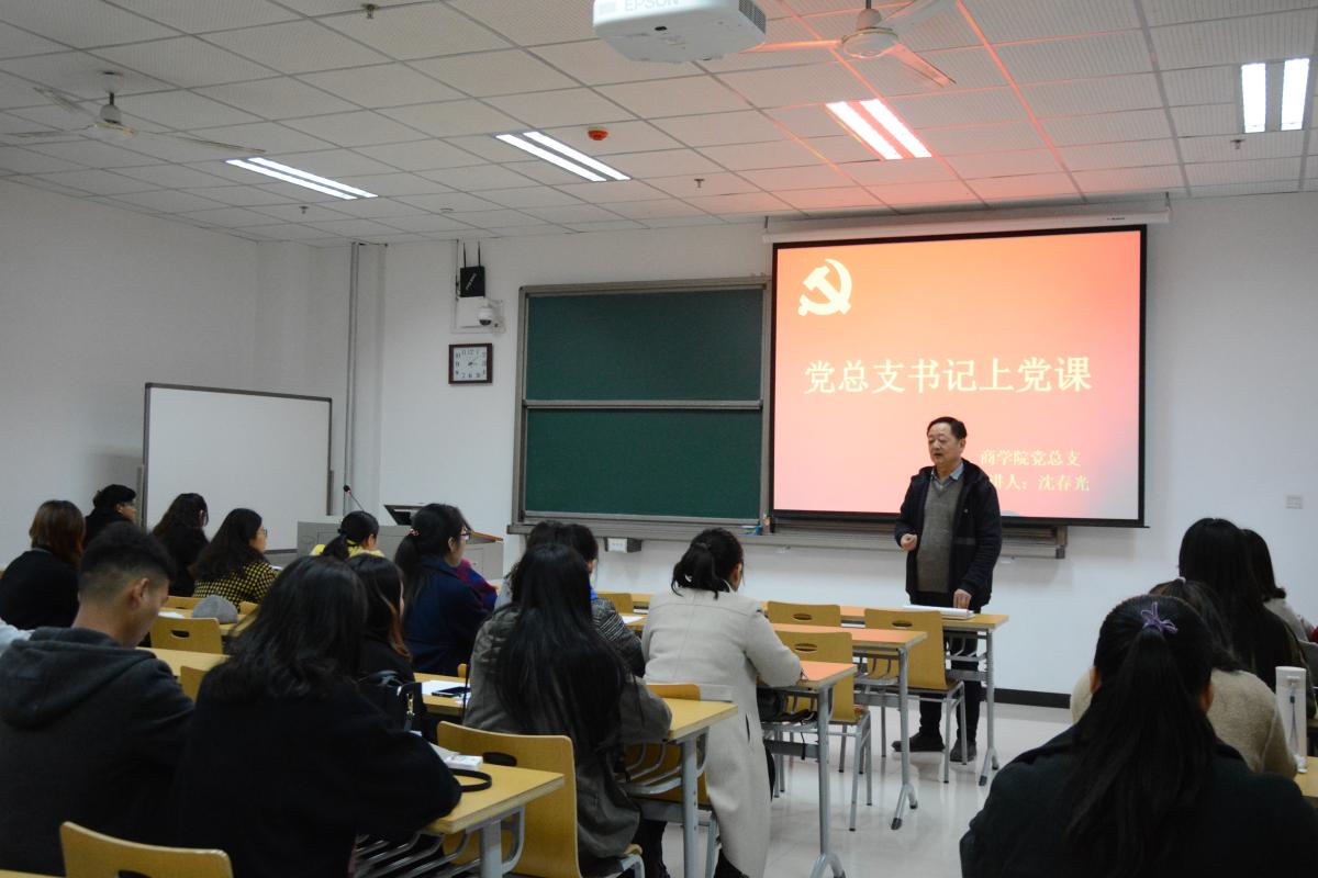 2018年11月15日下午3点,商学院党总支书记沈春光在文综楼608教室对我院第60期发展对象进行了以“共产党人的初心与使命”为主题的党课培训。我院团总支书记张志豪、各学生党支部书记以及全体入党发展对象参与了本次培训。