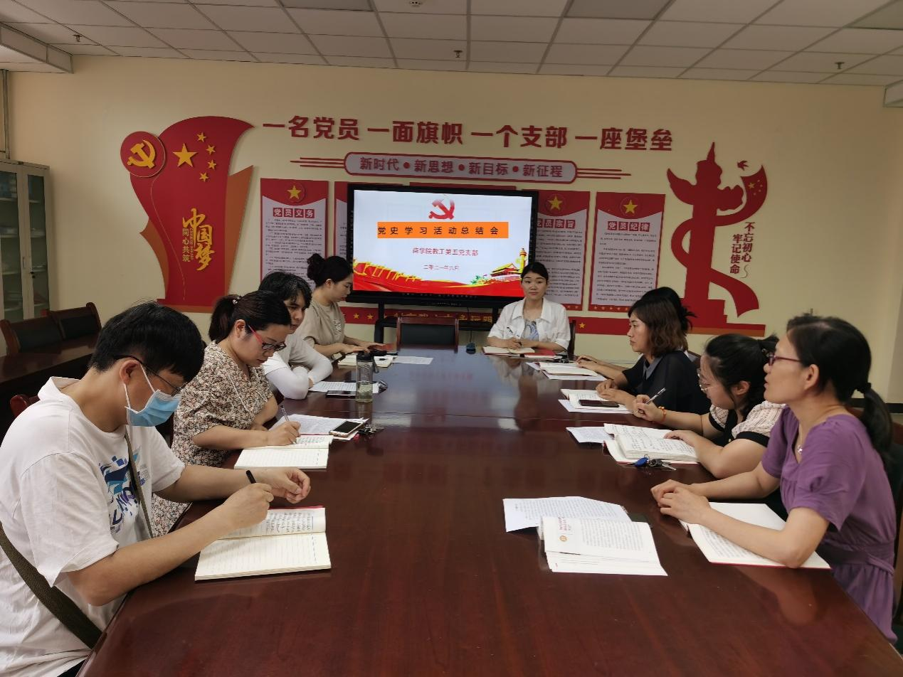 6月29日,我院教工第五党支部在1325党员活动室召开党史学习教育阶段性总结会,全体教工党员参加,会议由支部书记刘霞主持。