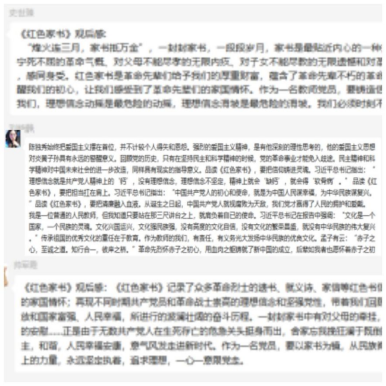 活动组织党员教师共同观看《红色家书》系列影片,《红色家书》以中国革命、建设、改革时期的人物与亲人、战友、朋友间的书信为线索,讲述了书信背后的故事,再现了不同时期中国共产党员和革命战士崇高的理想信念和坚定党性。影片中讲述的党的发展史实以及革命先烈无私忘我的家国情怀故事深深触动感动着每一位与会同志。随后,老师们结合红色家书展开交流,发表个人感悟感想。