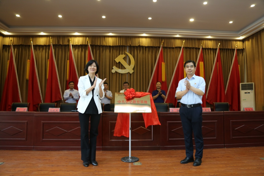 许昌学院组织部长冯晓民与长葛市委常委、组织部长李静共同为“许昌学院中共党史学习教育基地”揭牌。
