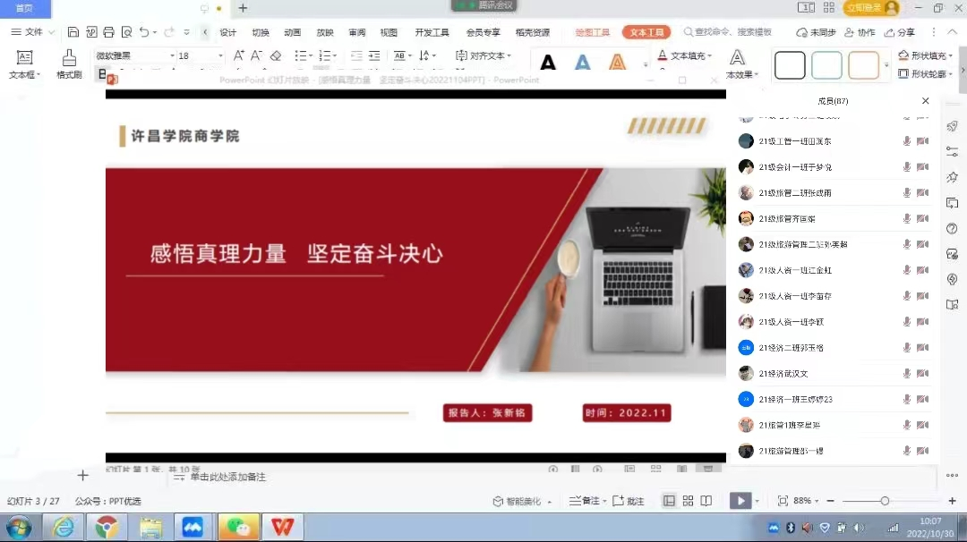 11月4日下午,张新铭院长为第68期入党积极分子上党课,84名入党积极分子聆听党课。
