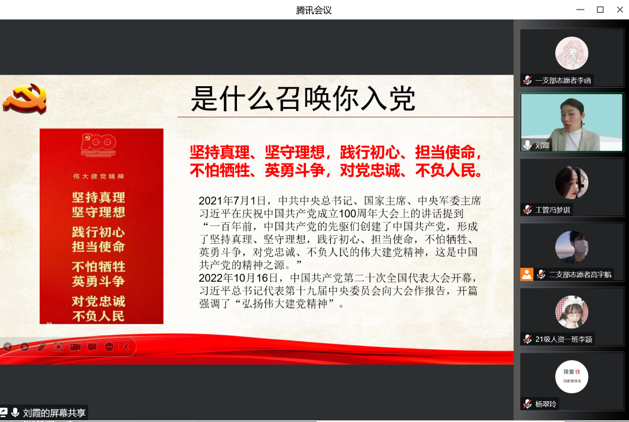 11月13日下午,我院副院长刘霞以腾讯会议的方式为第68期入党积极分子上党课,84名积极分子到课学习。