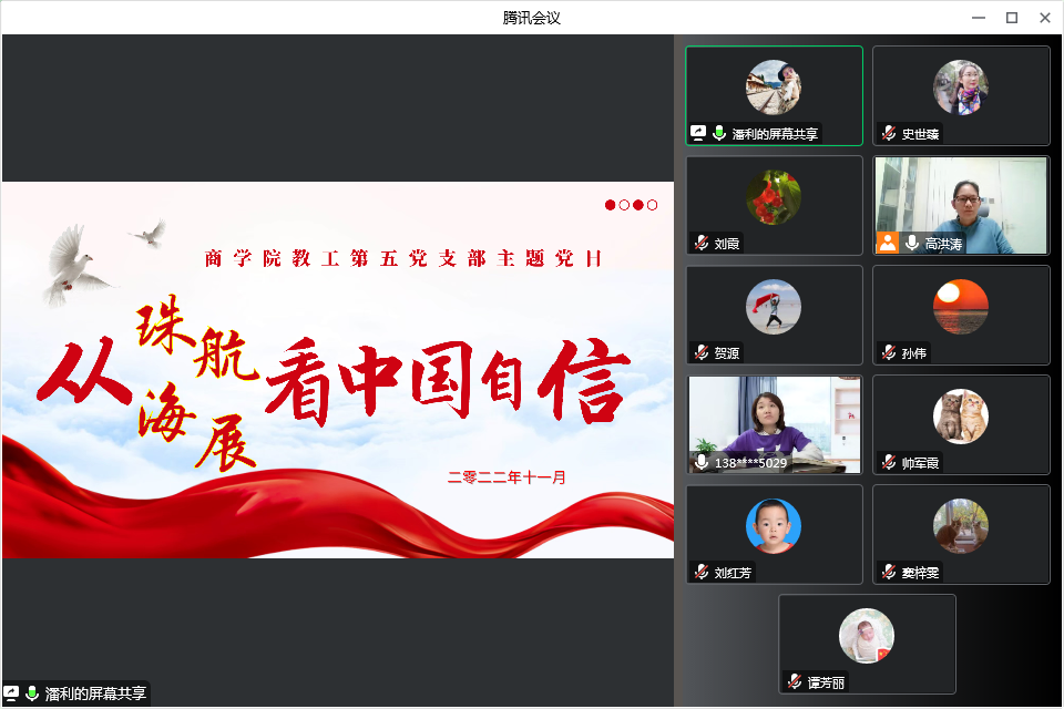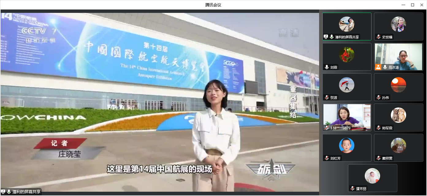 深入了解了我国航空航天发展方面的实力,领略国家高端科技的力量。11月25日,我院第五教工党支部开展了线上主题党日学习活动——“从珠海航展看中国自信”。活动中,潘利老师介绍珠海航展的概况,全体党员一起观看航展视频并交流观后感想。