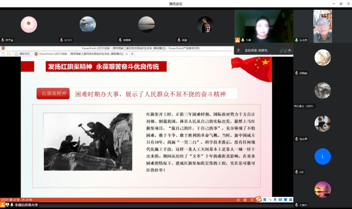 11月18日-27日,我院十个党支部采取网络自学、小组研讨、分享感悟等方式陆续召开了以“深入学习习近平总书记视察安阳重要讲话精神,大力弘扬红旗渠精神”为主题的专题组织生活会。与会的教师党员纷纷表示,在今后工作中会不怕困难、勇于拼搏、敢于担当、团结一致,在教学中立德树人,在科研方面积极进取,在生活上作风端正,做红旗渠精神的传承者和践行者。与会的学生党员纷纷表示,要爱党爱国,努力学习,服务社会,夯实基础,提升自身修养,做有理想、敢担当、能吃苦、肯奋斗的新时代好青年。