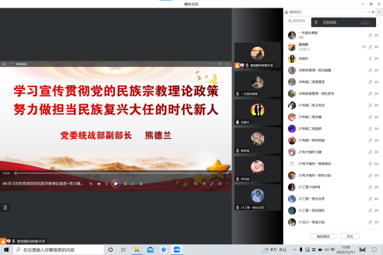 12月11日下午,校党委统战部副部长熊德兰应邀以腾讯会议的形式为我院第68期入党积极分子上党课,84人聆听党课。