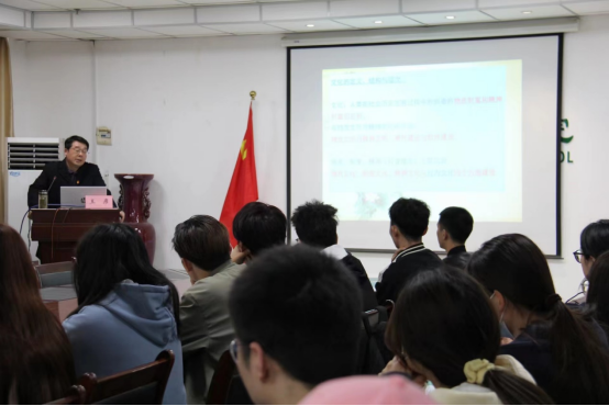 王彦部长以“党对中华优秀传统文化的继承与发展”为主题,从文化的定义、结构与层次、中国传统文化界定及其特点、思想路线的形成与建立过程几个方面为同学们详细讲解中华优秀传统文化的发展及相关内容。王彦部长说到,在党的二十大报告中多次谈到“文化”二字,可见文化传承的重要性,并引导同学们遇到问题要积极乐观的面对,努力拼搏、追求上进,不断的提升自我修养。