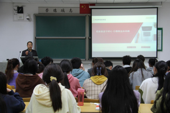 课上,张院长以“砥砺奋进守初心 行稳致远永向前”为主题,从历史到实践感悟马克思主义的真理力量和实践力量的必要性、从党的奋斗历程领悟中国共产党领导的必然性、从马克思主义及其中国化理论创新的成就、增强自觉贯彻落实党的创新理论的重要性等几方面展开讲述。他希望青年学子能够认真学习领会新思想、新理论,牢固树立正确的世界观、人生观、价值观,坚定不移跟党走,争做新时代有担当有作为的大学生。