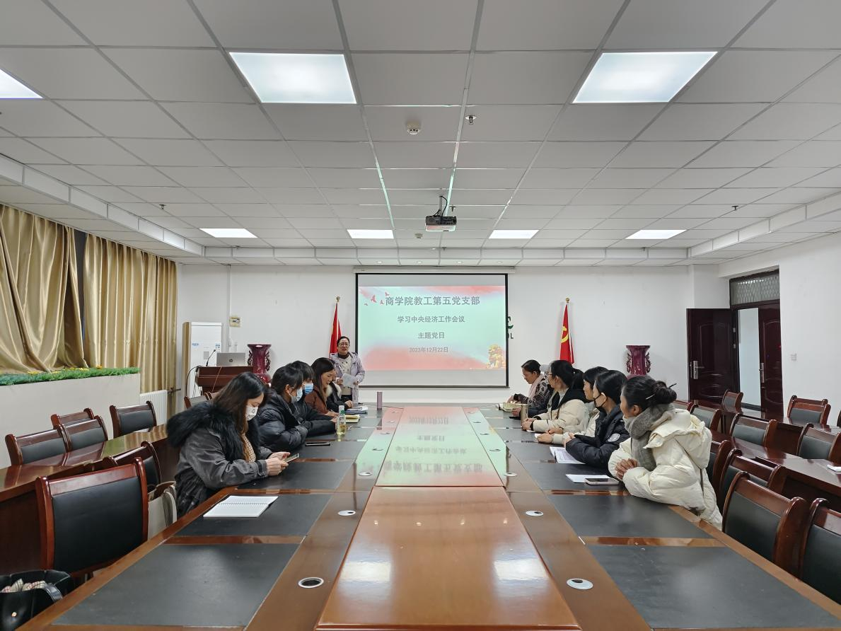 为深入领会中央经济工作会议精神,2023年12月22日,我院教工第五党支部开展“了解经济发展形式、共话旅游经济”主题党日活动。活动主要分为“学习重要精神、畅谈感悟话发展”两个环节,活动由党支部书记刘霞同志主持,支部全体党员参加。
