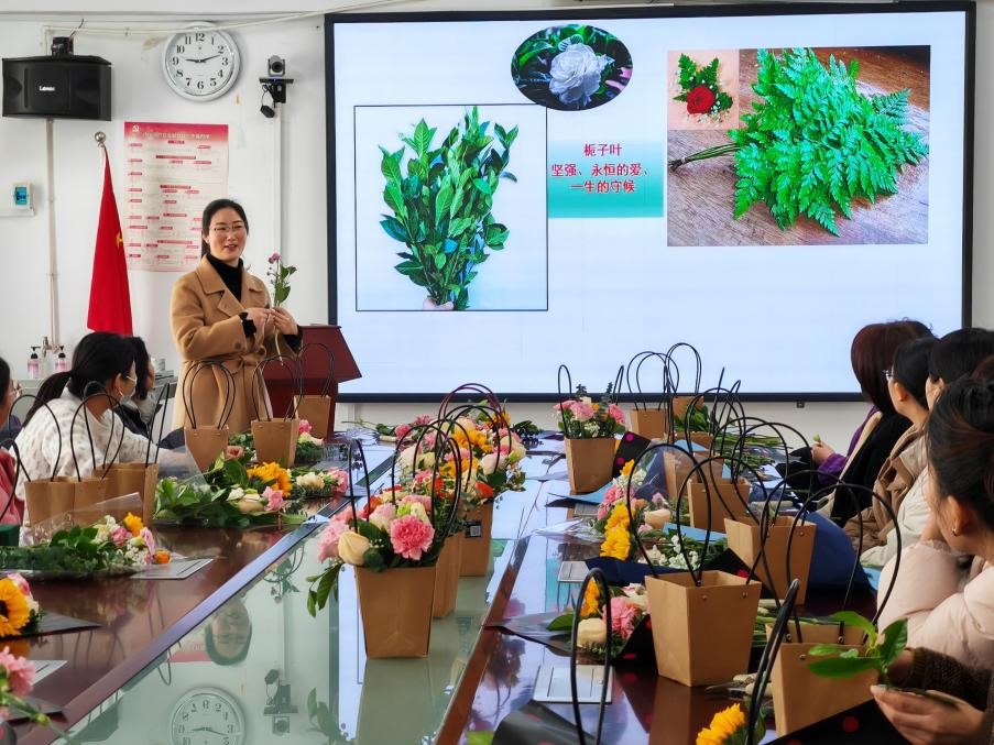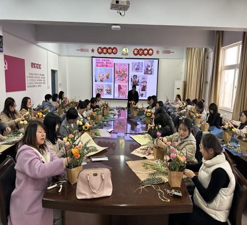 史老师充分发挥旅游专业特长优势,利用其丰富的花艺课程经验,以其专业的花艺知识和独特的艺术视角,从活动的策划到活动的举办,都提供了宝贵的建议和指导。在她的帮助下,各个分工会举办的花艺沙龙活动,让女性教职工们在繁忙的工作之余,能够感受到插花艺术的魅力和乐趣。