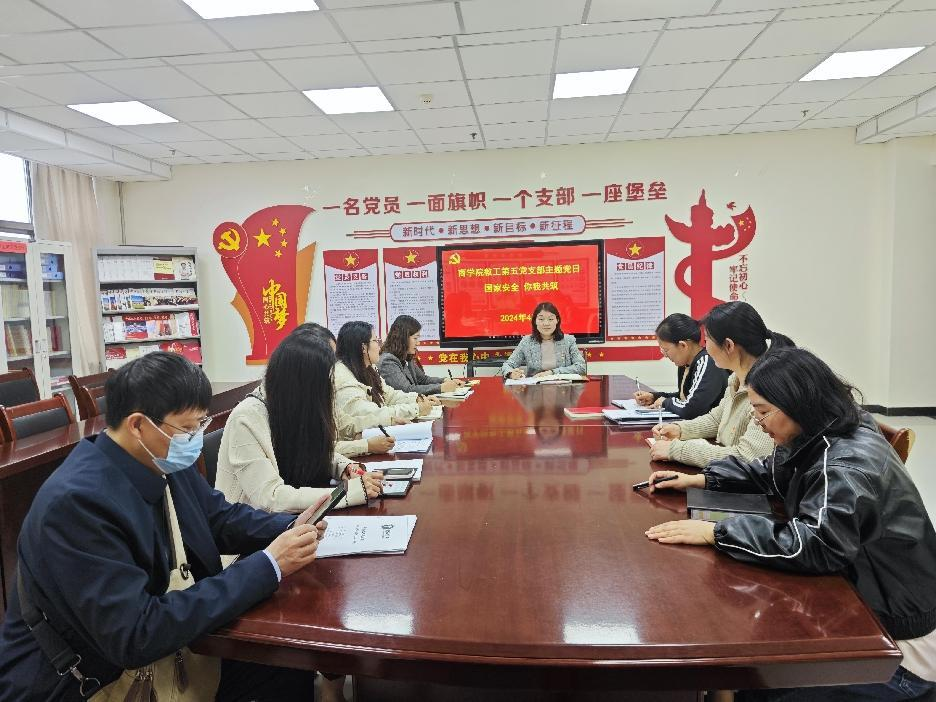 2024年4月30日,商学院教工第五党支部组织开展“国家安全 你我共筑”为题的支部主题党日,活动由党支部书记刘霞同志主持,全体支部党员参加。