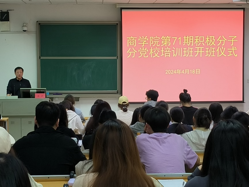 4月18日晚,我院党委在E-304教室举行第71期积极分子分党校开班仪式,70余名入党积极分子参加会议。