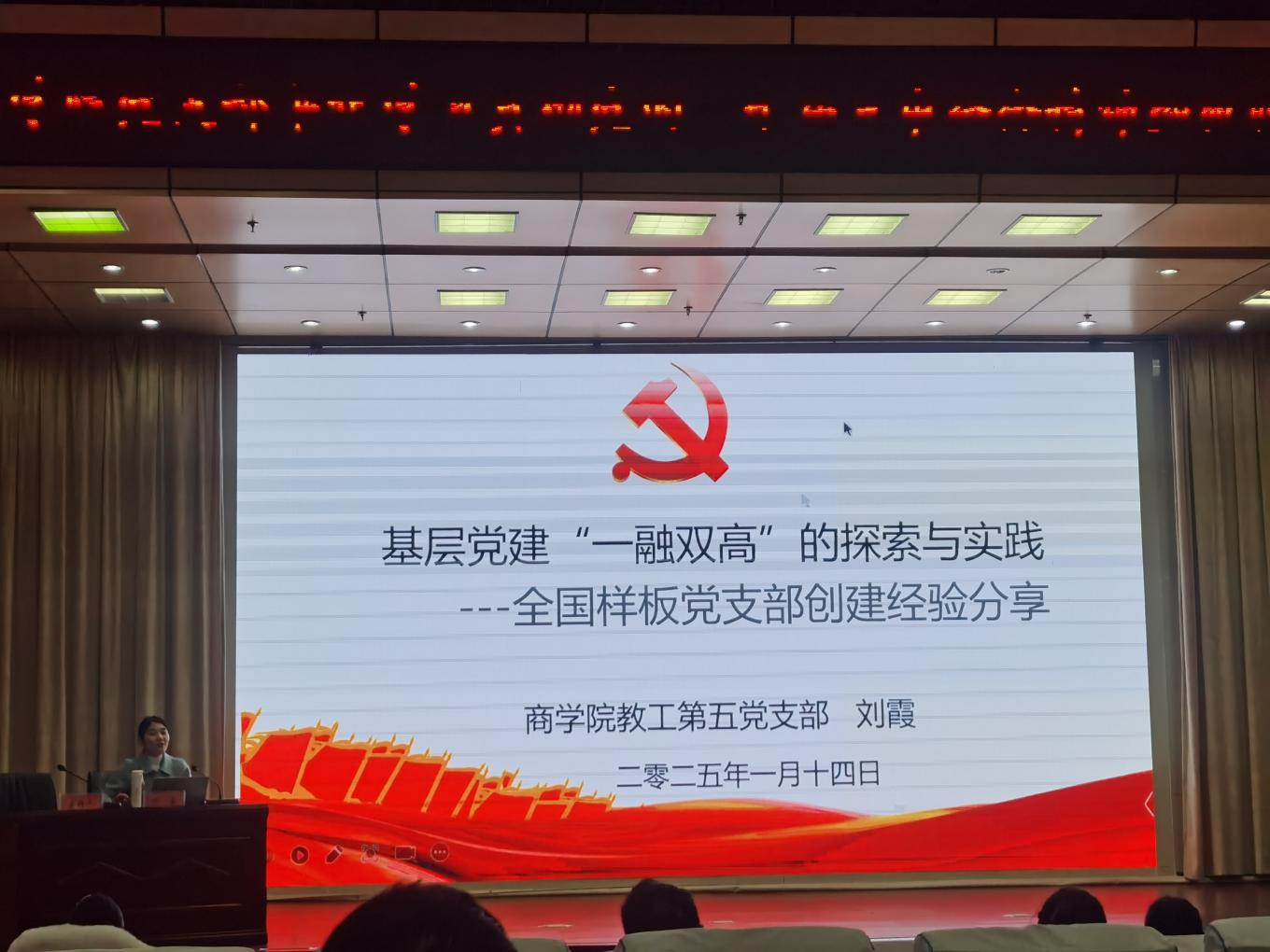 商学院教工第五党支部一直坚持“1234”工作体制,充分结合专业特色和党员优势开展支部建设活动,高度体现了党建与业务的“一融双高”。此次分享不仅是高校基层党建落实高质量党建引领高质量发展的交流探讨,也是商学院党建工作成果的展现,更是商学院教工第五党支部国家级样板党支部培育创建的具体实践。
