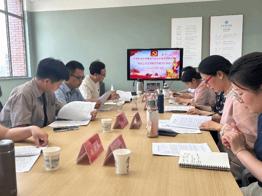 2025年5月15 日下午,商学院教工第一党支部在商学院梁广华副院长的带领下,前往中原科技学院立业楼3楼会议室,与该校管理学院教工党支部开展联合主题党日活动。商学院教工第一党支部党员漆彦忠、王宏鹏、潘经强、宋瑞霞等参加此次活动,中原科技学院管理学院教工党支部书记胡亚兰、工商管理系主任刘静、副主任杨佳雨、物流管理教研室主任郭卫萍、副主任陶永奎一同出席。