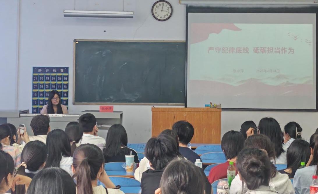 张小萍以《严守纪律底线、砥砺担当作为》为主题,带领同学们深入学习了《中国共产党纪律处分条例》,从严守纪律底线的重要性和必要性、如何严守底线、锤炼过硬本领等几方面进行了讲解,引导大家以史为鉴,弘扬纪律强党的优良传统,传承严明纪律的红色基因。