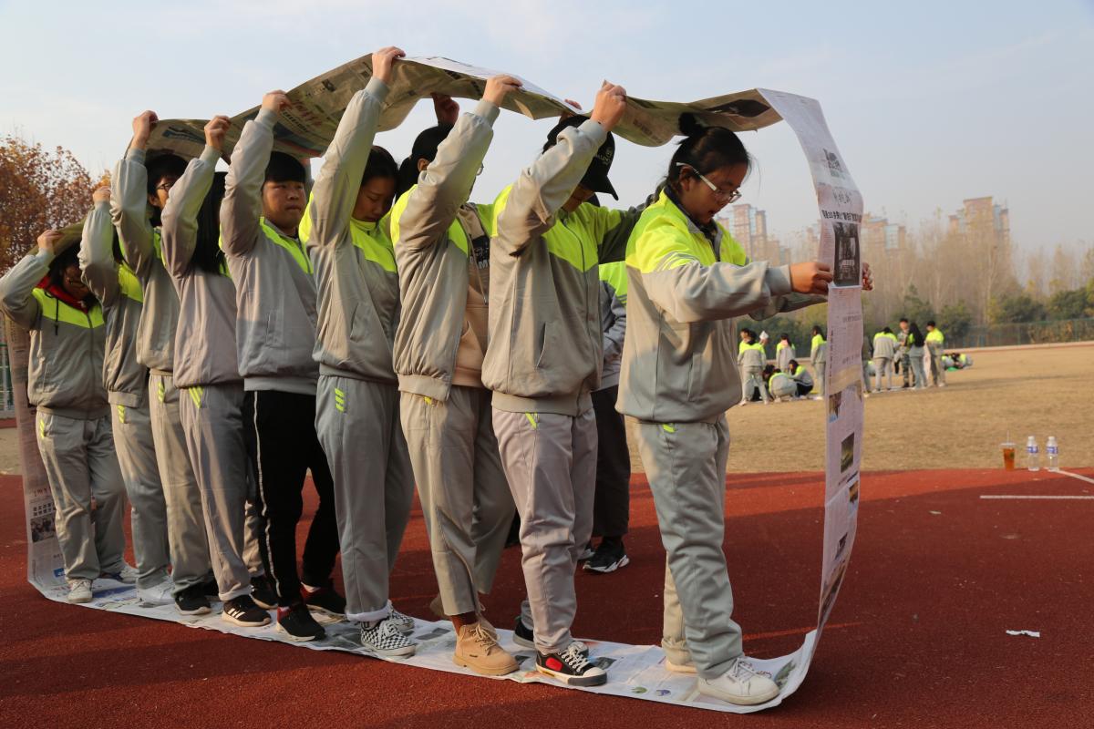 这次活动同学们被分为了十二支队伍,在静庐田径场进行了为期一天的素质拓展。此次素拓的第一个项目是各队队歌、队名、队旗以及队形的展示,各队有奇思妙想的队名:粉红娘娘队、魔法少女队、啥都对队等等;有充满趣味的队歌:《巴啦啦小魔仙》、《奇迹再现》等等;搞怪幽默的队形和队旗更是逗的同学们笑声不停,增添了许多欢乐。接着还举行了“纸杯传递”、“风火轮”、“萝卜蹲”等八项游戏,各队都是积极准备、直面挑战。比如,在“卫生纸跳大绳”游戏中,各队用卫生纸制作大绳,然后每队分成两组用最短的时间跳十个,面对卫生纸易断、过轻过软的问题,各队队员之间互相帮忙、齐心协力,想尽办法克服难题,最终都成功地完成了任务。还有“风火轮”项目,各队用报纸和胶带制作一个圆环,由队里的两组成员踩着报纸接力走完100米,比赛时田径场上充满各队成员“一二、一二”的口号声,激情洋溢。在其他的项目中,各队队员之间也是相互配合,他们拿出饱满的精神状态,相互之间默契十足,尽心尽力的完成每一个项目。