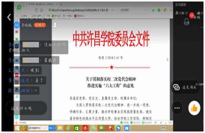 为了让同学们对我校工作实施情况以及人才培养计划有更深切的了解,明确学校的发展目标,提高同学们的团结意识、责任感和使命感。2020年3月15日,商学院开展了以“学习《许昌学院事业发展规划(2016-2020)》”为主题的网络主题班会,组织了全院学生对《许昌学院章程》、《许昌学院事业发展规划(2016-2020)》和《关于深入贯彻落实校二次党代会精神推进实施“六大工程”的意见》三大文件进行统一学习。