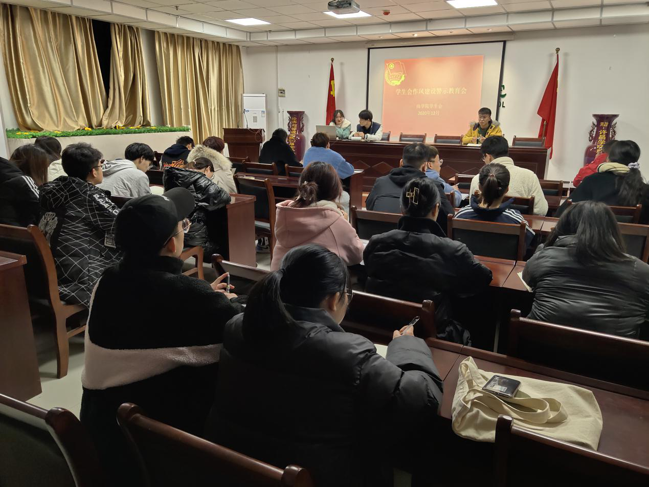 为响应学校加强学生组织作风建设工作,12月2日晚六点,在文综楼1302召开学生会作风建设警示教育会,19级学生会成员参加会议。