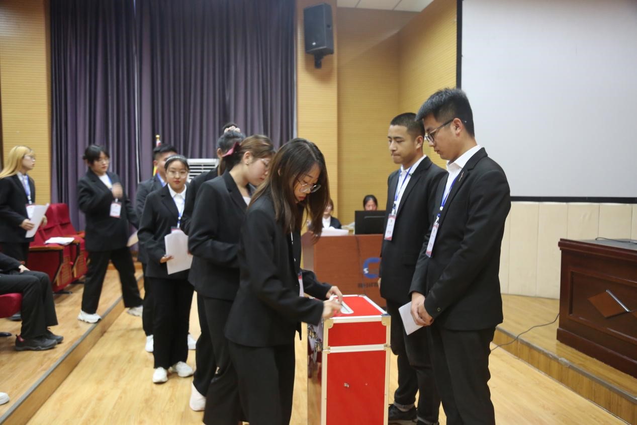 5月25日晚7点,在院党委的正确领导和校学生会的指导下,我院第四次学生代表大会在蕴韬楼B合八教室召开,大会以听取和讨论领导讲话精神,听取和审议我院过去一年学生会工作报告,选举产生新一届学生会主席团成员为主要任务。院团委书记谭芳丽、校学生会代表张海森、学生代表出席大会,学生会主席康锦源担任大会执行主席。