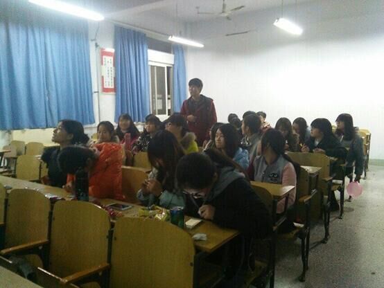班会上,班长张傲为大家放映了许昌学院宣传片,以宣扬学风建设思想,深入班会主题,由此展开本次班会主要内容。为活跃班会气氛,首先由团支书龚俊芳、副班长王文启带领大家做了击鼓传花的小游戏。随后班长张傲以PPT的方式给大家展示了一年来班级的学风建设成果,学习工作方面的成就等内容,同学们都认真聆听,然后自由发表对学风建设的想法和建议。为增强同学们之间的情感,班会的最后大家一同观看了班委精心制作的相册,场面温馨,其乐融融。