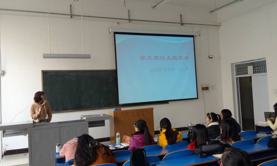 2015年11月13日中午,管理(经济)学院13级财务管理2班于艺术楼107教室举行了“学风建设”主题班会。此次班会由团支书孟倩主持,其余班委协助举办,管理(经济)学院团总支书记兼13级辅导员王旭光老师,13级辅导员秦聪老师参加了此次班会。