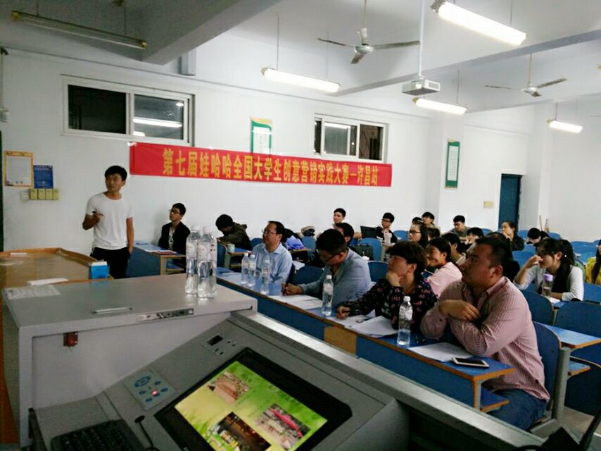 2016年5月27日,许昌学院第七届娃哈哈全国大学生创意营销大赛于下午16点在C-201教室举行闭幕仪式,商学院钟和平老师出席仪式,全体参赛人员到场参加。
