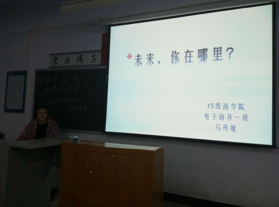 为了加强班级学风建设,让同学们对未来的职业有一个更好的规划。15级电子商务1班于12月2日下午六时在c楼302教室举办了“职业生涯规划”的主题班会,此次班会由班长王帅和团支书韩洁共同主持,15级电子商务1班全体同学参加。