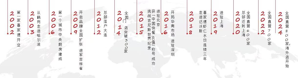 喜家德餐饮集团(以下简称“喜家德 ”)于 2002 年创立于黑龙江鹤岗, 全国率先超过 800 家连锁直营门店,遍布 46个城市,同时巴塞罗那、东南亚等 海外店也已陆续开店。全国设立 40多个中央厨房,企业员工 16000 余人。全 球总部设立于苏州。喜家德致力于传承中华水饺文化,建立全国首家饺子博 物馆。2012 年企业依据长久发展规划,设立饺子人才发展中心,用于内部人 才培训与孵化。喜家德曾荣获“ 中国快餐 50 强” 、“中华特色餐饮美食名店 ”、“全国绿色餐饮 示范企业 ”、“全国放心餐饮十佳企业 ”等荣誉称号,连 续多次受邀亮相达沃斯晚宴和世界外交官文化之旅晚宴,成功挑战“史上最多 人包饺子吉尼斯纪录 ”。