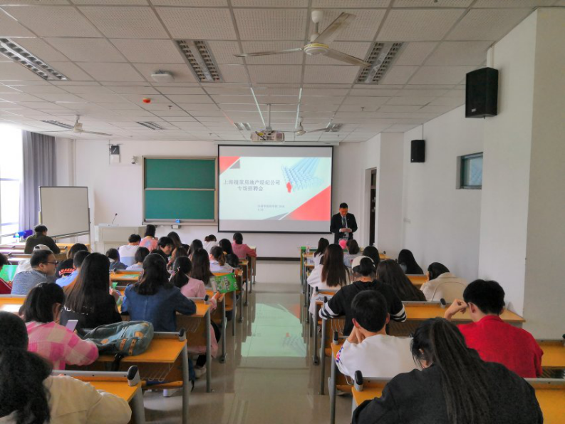 为进一步拓宽我院毕业生就业渠道,提高我院毕业生的实习质量。2019年4月24日,我院在文综楼306教室举办了链家公司上海分部宣讲会。