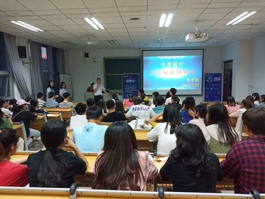 为了做好2020届毕业生实习就业工作,我院携手碧桂园集团和中原银行于2019年5月21日下午18:30在文科综合楼E404教室召开了实习就业招聘会。