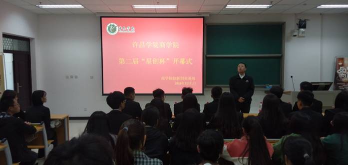 2019年11月1日下午,许昌学院商学院第二届“星创杯”创新创业比赛开幕式在文综楼209教室隆重举行。出席本次开幕式的有商学院党总支副书记海泳、创新创业基地主席樊茂林,以及创新创业基地全体成员和参赛队伍代表人员。