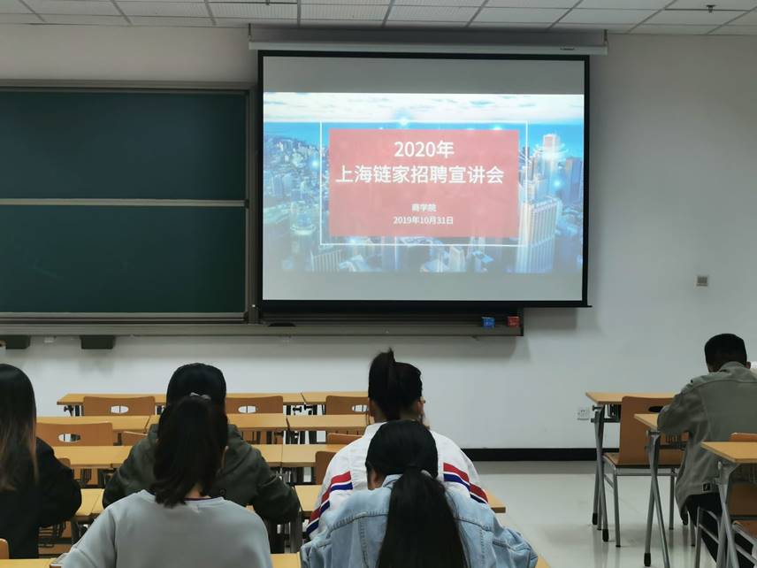 为进一步拓宽我院毕业生就业渠道,提高我院毕业生实习质量及就业率,2019年10月31日下午两点半,我院在文综楼408教室举办了上海链家招聘宣讲会。