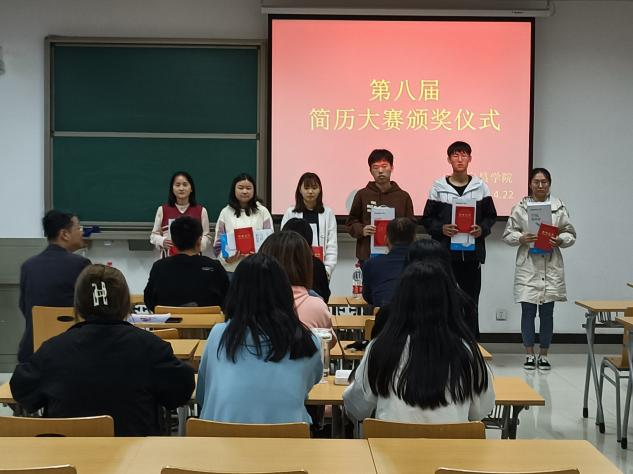 2021年4月22日,由招生就业处(创新创业中心)主办、商学院商学院承办的我校“设计生涯,添彩历程”第八届简历设计大赛颁奖仪式在文综楼E602举行。
