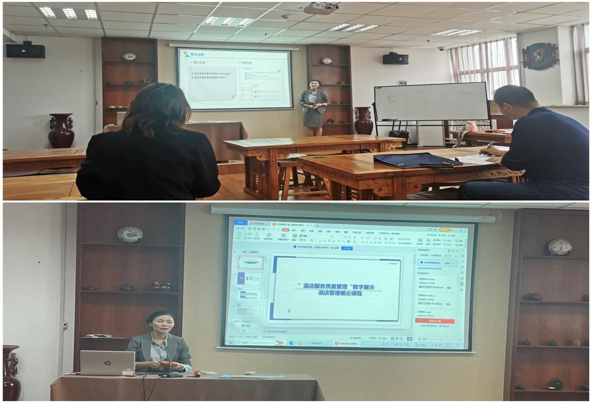 活动中,窦梓雯老师对即将参加比赛的《酒店服务质量管理》课程进行了现场演练,各位专家认真聆听并从汇报设计、讲授技巧、ppt设计美化、语言表达等方面提出了诸多建议,窦梓雯老师表示感谢在赛前得到专家的指导和建议,受益匪浅,会从多方面完善自己的比赛内容,也对参加比赛更有信心。